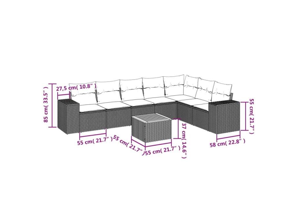 8dílná zahradní sedací souprava s poduškami béžová polyratan 3257808