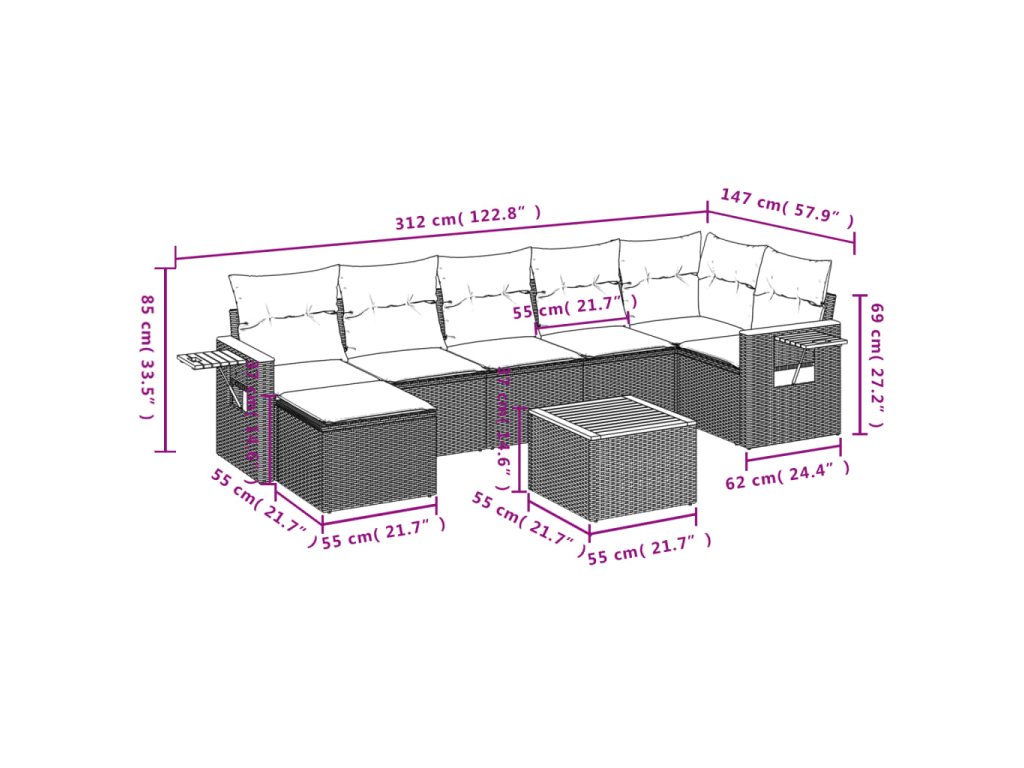 8dílná zahradní sedací souprava s poduškami béžová polyratan 3259440