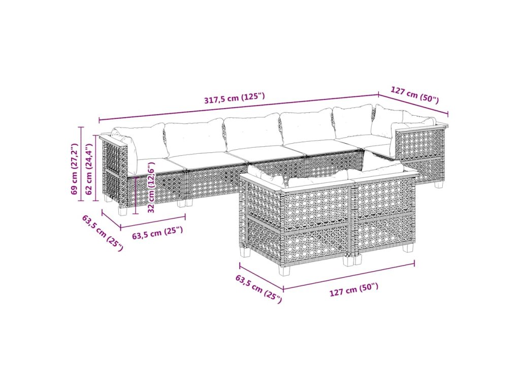 8dílná zahradní sedací souprava s poduškami béžová polyratan 3261892
