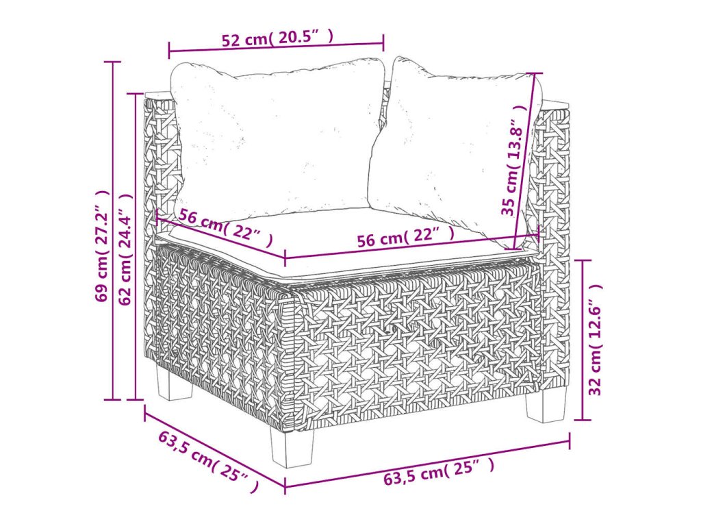 - Rozměry podušky na sedák (středový díl): 63,5 x 56,5 x 3 cm (Š x H x T)