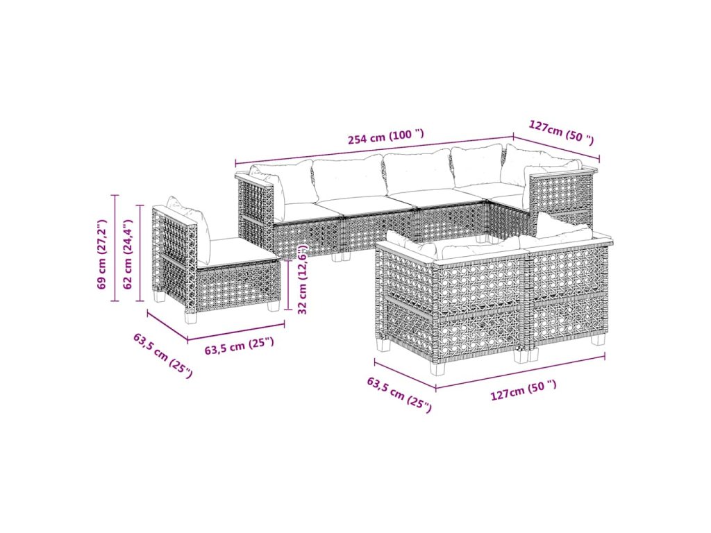 Tato zahradní sedací souprava je dokonalým doplňkem vaší zahrady, terasy nebo dvorku a poskytne vám pohodlné a příjemné místo, kde si můžete povídat s rodinou a přáteli nebo jen tak odpočívat a užívat si pobyt venku.