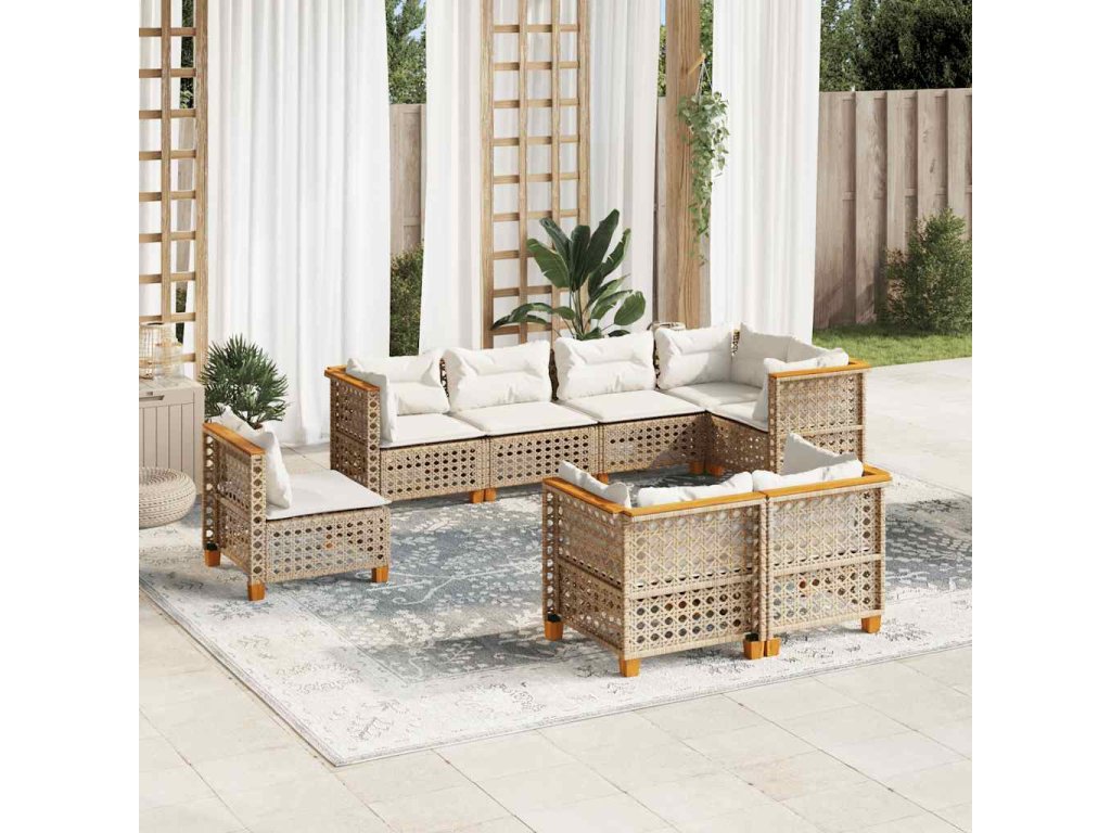 8dílná zahradní sedací souprava s poduškami béžová polyratan 3261904