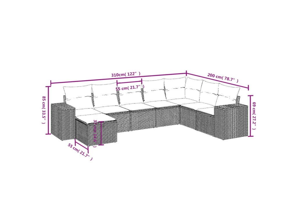 Tato zahradní sedací souprava je dokonalým doplňkem vaší zahrady, terasy nebo dvorku a poskytne vám pohodlné a příjemné místo, kde si můžete povídat s rodinou a přáteli nebo jen tak odpočívat a užívat si pobyt venku.