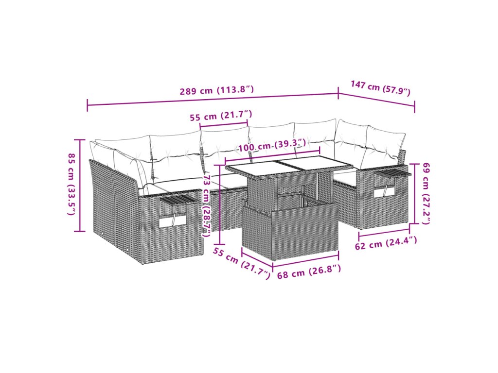 Tato zahradní sedací souprava je dokonalým doplňkem vaší zahrady, terasy nebo dvorku a poskytne vám pohodlné a příjemné místo, kde si můžete povídat s rodinou a přáteli nebo jen tak odpočívat a užívat si pobyt venku.