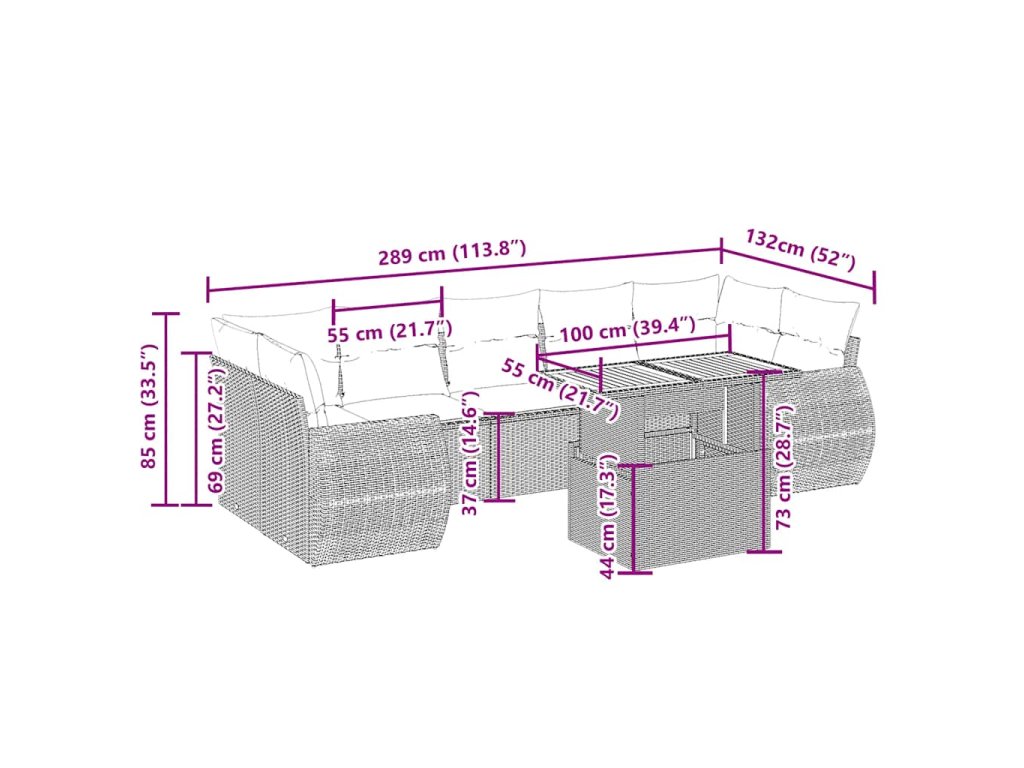 Tato zahradní sedací souprava je dokonalým doplňkem vaší zahrady, terasy nebo dvorku a poskytne vám pohodlné a příjemné místo, kde si můžete povídat s rodinou a přáteli nebo jen tak odpočívat a užívat si pobyt venku.