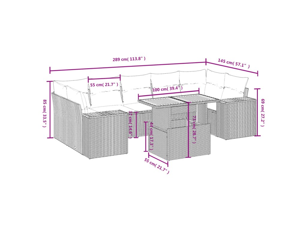 8dílná zahradní sedací souprava s poduškami béžová polyratan 3272550