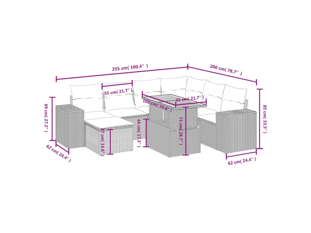 Tato zahradní sedací souprava je dokonalým doplňkem vaší zahrady, terasy nebo dvorku a poskytne vám pohodlné a příjemné místo, kde si můžete povídat s rodinou a přáteli nebo jen tak odpočívat a užívat si pobyt venku.