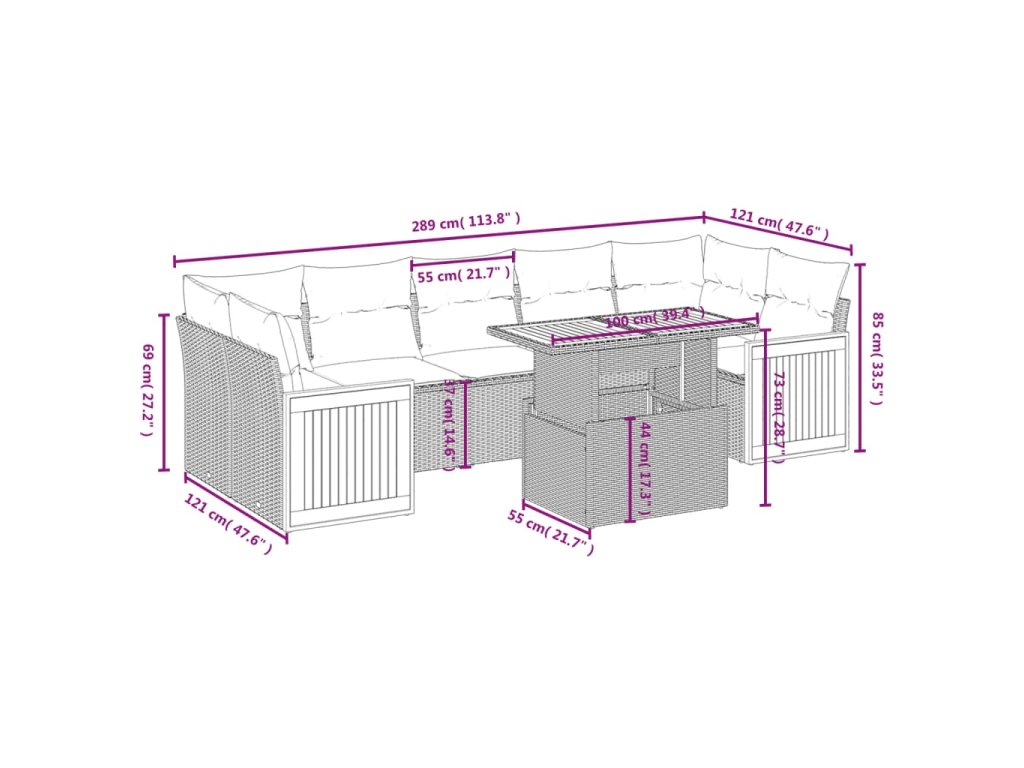 Tato zahradní sedací souprava je dokonalým doplňkem vaší zahrady, terasy nebo dvorku a poskytne vám pohodlné a příjemné místo, kde si můžete povídat s rodinou a přáteli nebo jen tak odpočívat a užívat si pobyt venku.