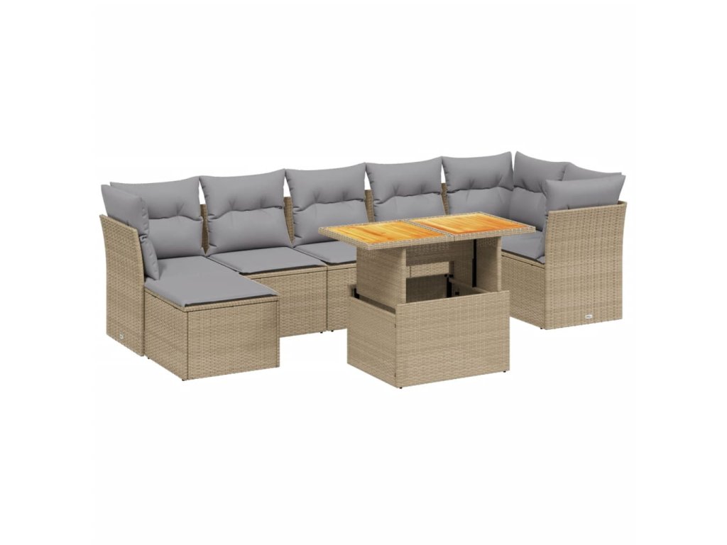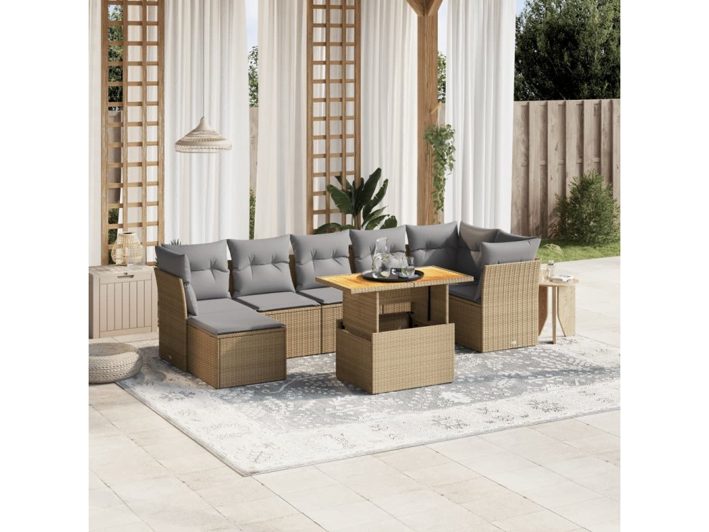 8dílná zahradní sedací souprava s poduškami béžová polyratan 3275488