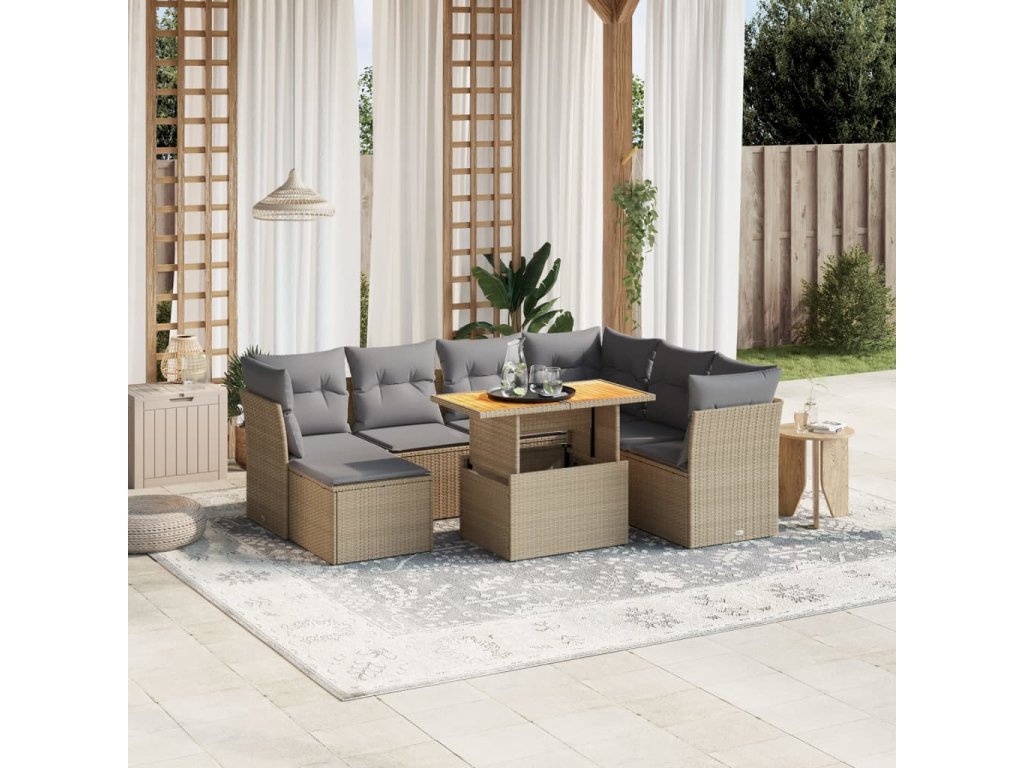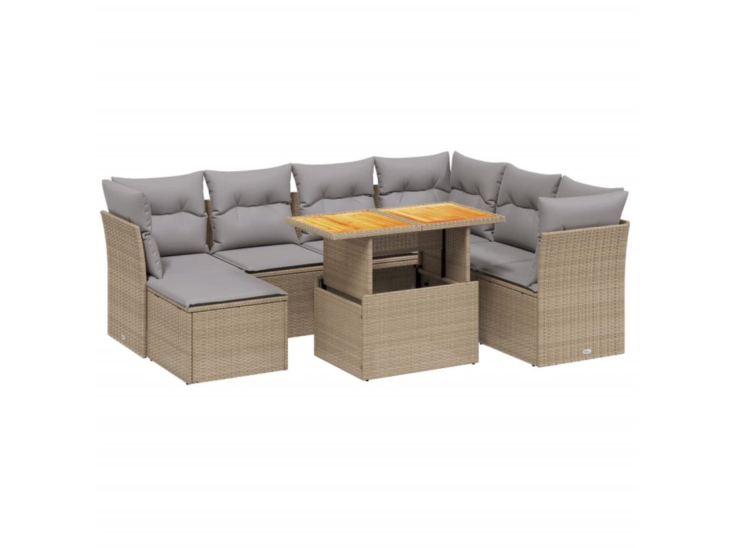 8dílná zahradní sedací souprava s poduškami béžová polyratan 3275495
