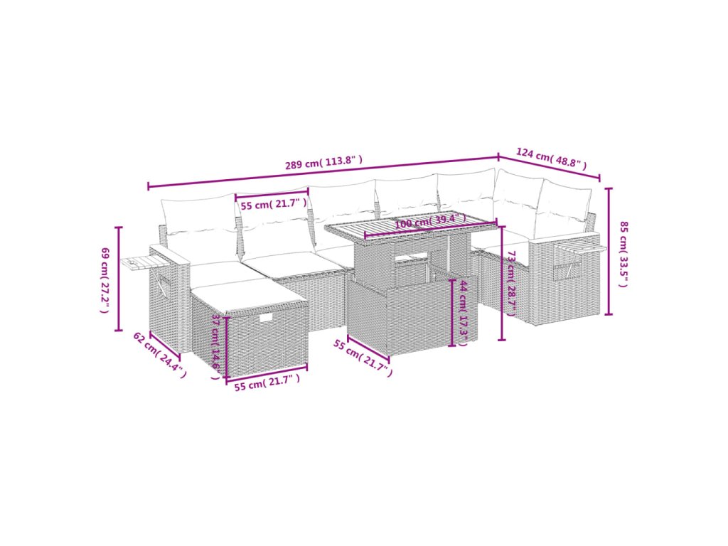 Tato zahradní sedací souprava je dokonalým doplňkem vaší zahrady, terasy nebo dvorku a poskytne vám pohodlné a příjemné místo, kde si můžete povídat s rodinou a přáteli nebo jen tak odpočívat a užívat si pobyt venku.