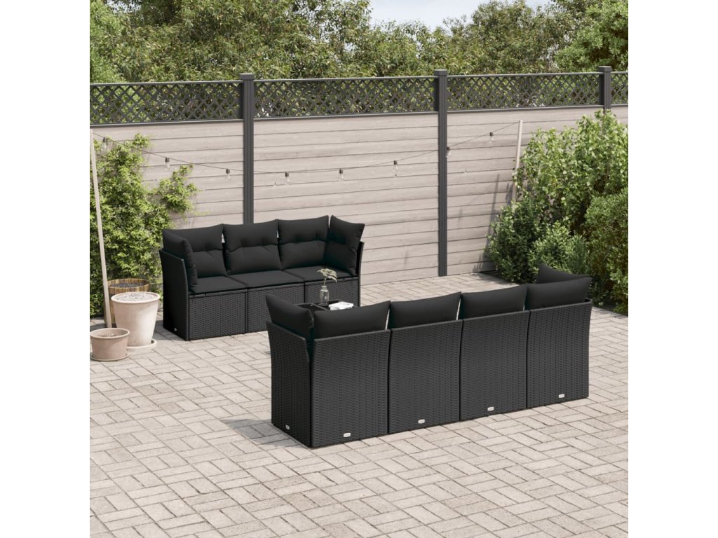 8dílná zahradní sedací souprava s poduškami černá polyratan 3217275