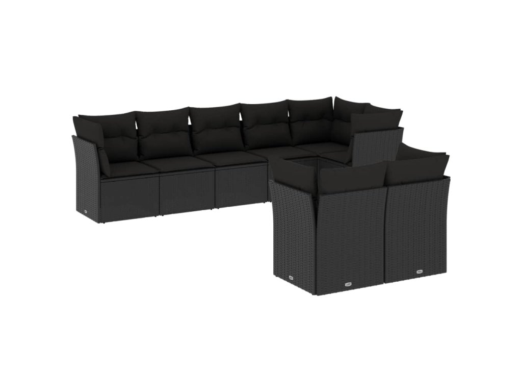 8dílná zahradní sedací souprava s poduškami černá polyratan 3217905