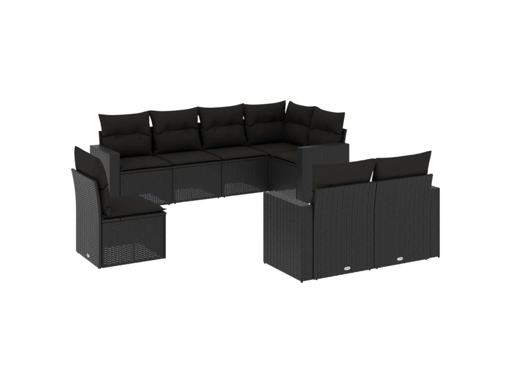 8dílná zahradní sedací souprava s poduškami černá polyratan 3219225