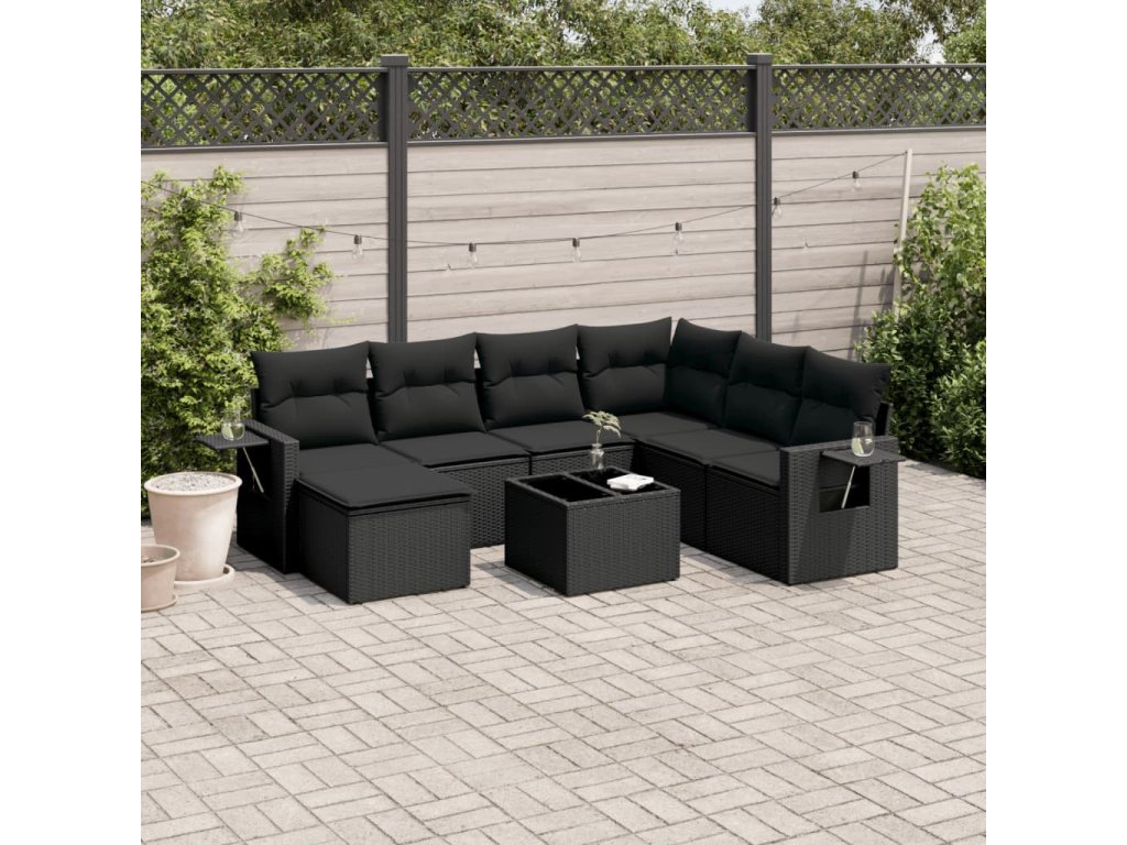 8dílná zahradní sedací souprava s poduškami černá polyratan 3220504
