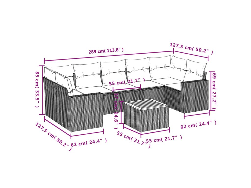 8dílná zahradní sedací souprava s poduškami černá polyratan 3224033