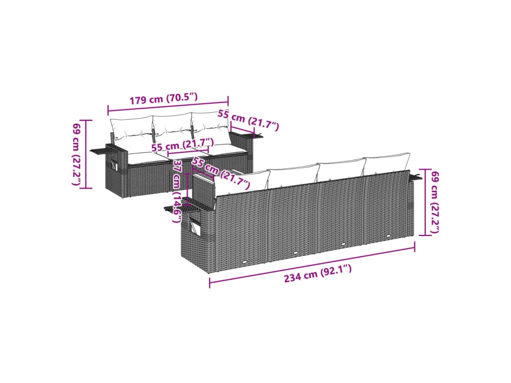 Tato zahradní sedací souprava je dokonalým doplňkem vaší zahrady, terasy nebo dvorku a poskytne vám pohodlné a příjemné místo, kde si můžete povídat s rodinou a přáteli nebo jen tak odpočívat a užívat si pobyt venku.