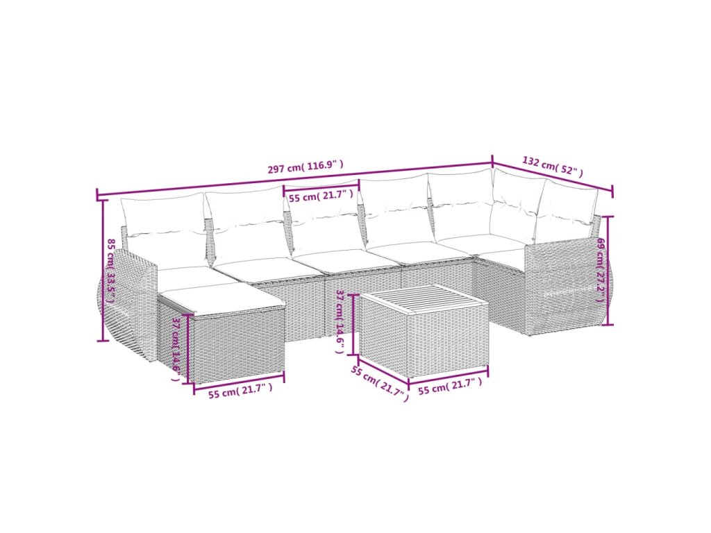 8dílná zahradní sedací souprava s poduškami černá polyratan 3225110