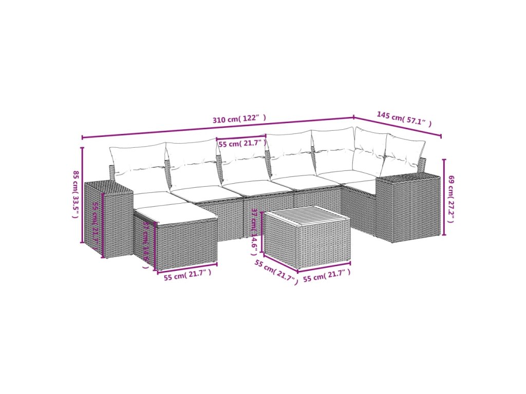 8dílná zahradní sedací souprava s poduškami černá polyratan 3225551