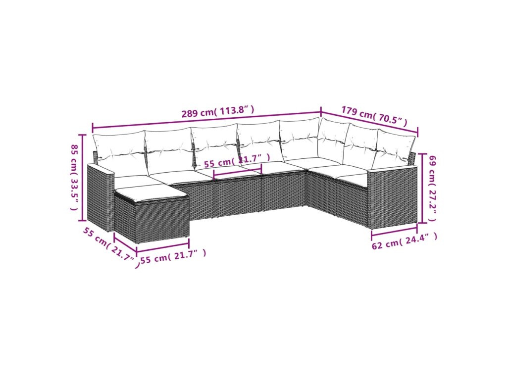 8dílná zahradní sedací souprava s poduškami černá polyratan 3226244