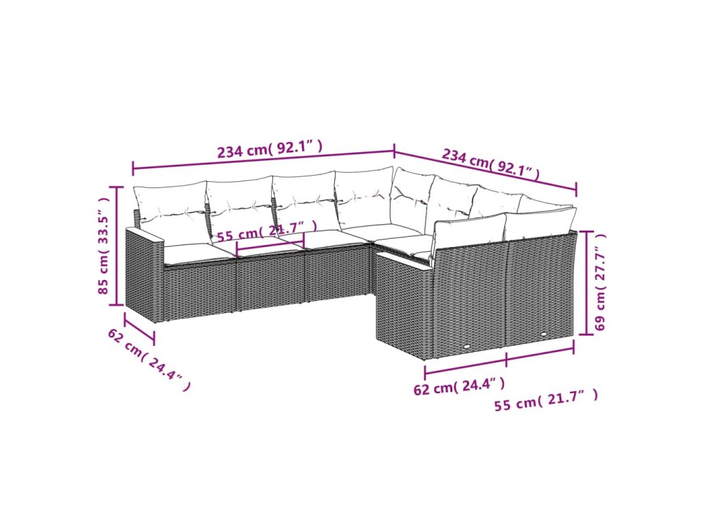 8dílná zahradní sedací souprava s poduškami černá polyratan 3226552