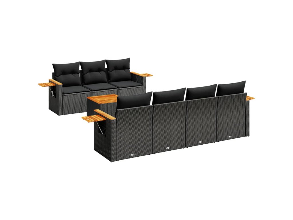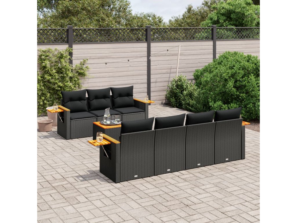 8dílná zahradní sedací souprava s poduškami černá polyratan 3226643
