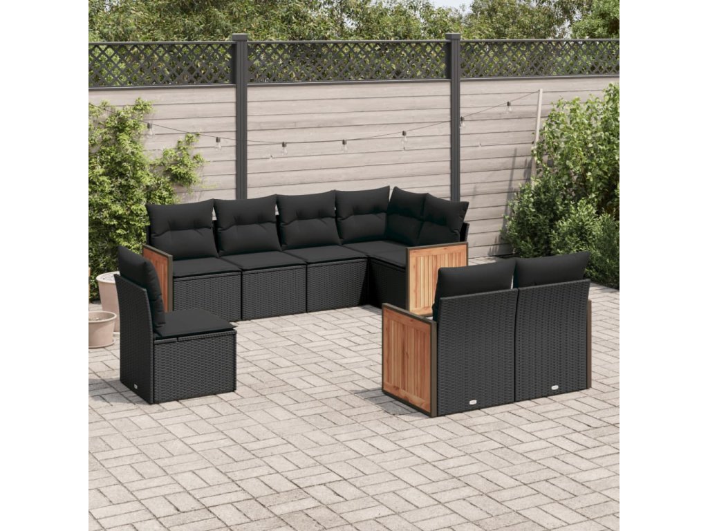8dílná zahradní sedací souprava s poduškami černá polyratan 3227840