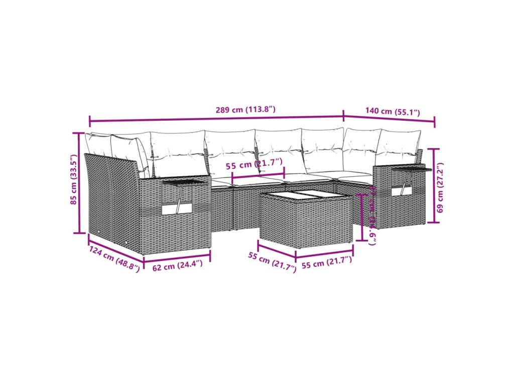 8dílná zahradní sedací souprava s poduškami černá polyratan 3252272