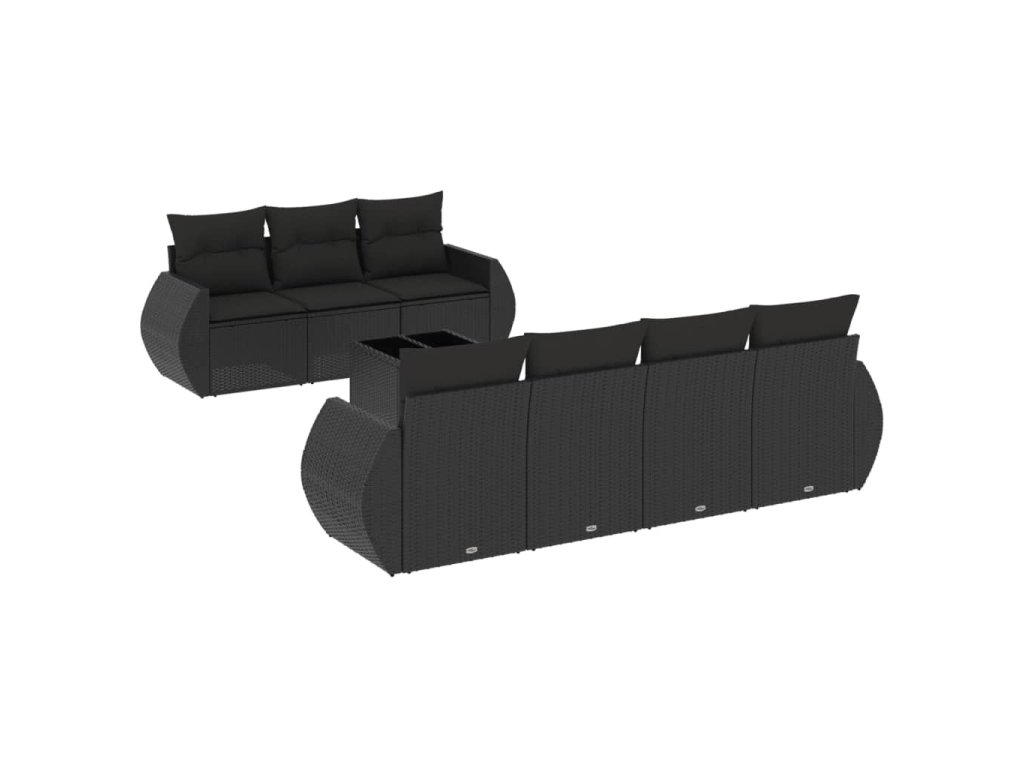 8dílná zahradní sedací souprava s poduškami černá polyratan 3253462