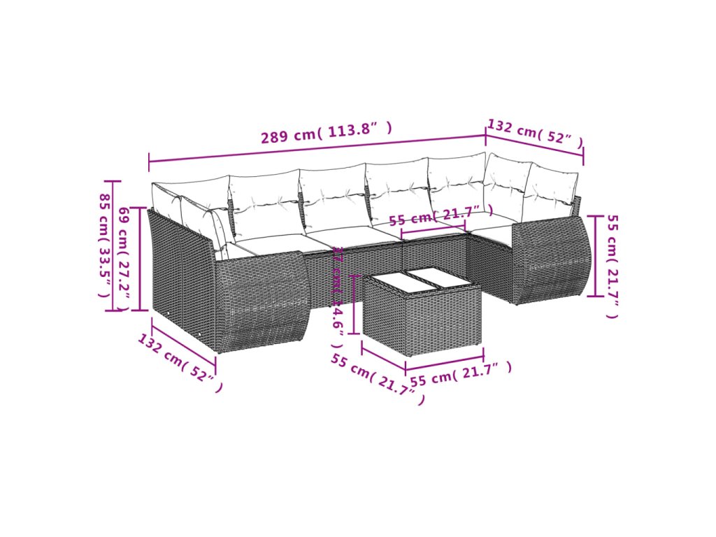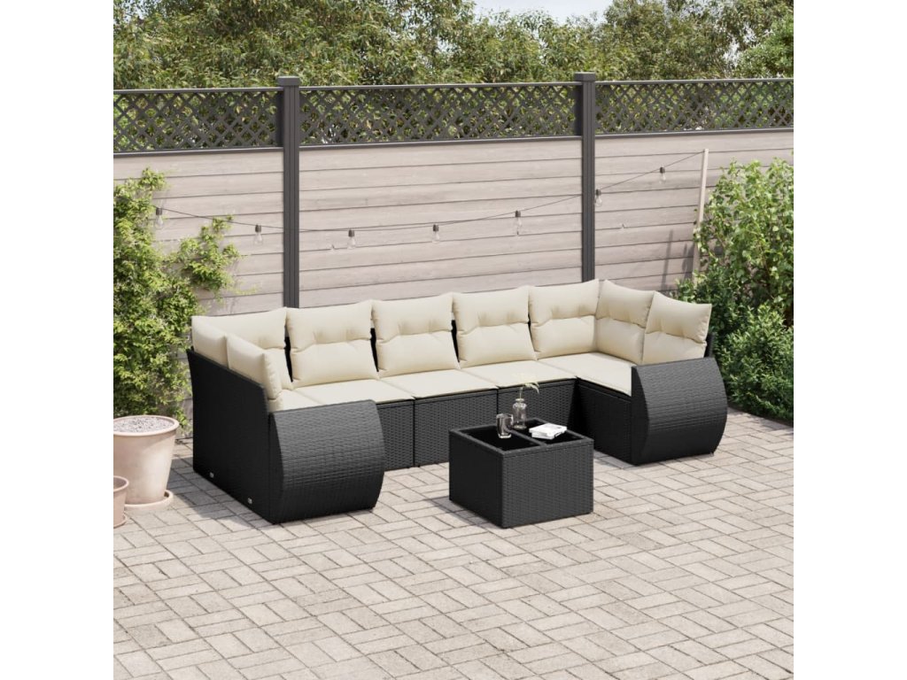 8dílná zahradní sedací souprava s poduškami černá polyratan 3253473