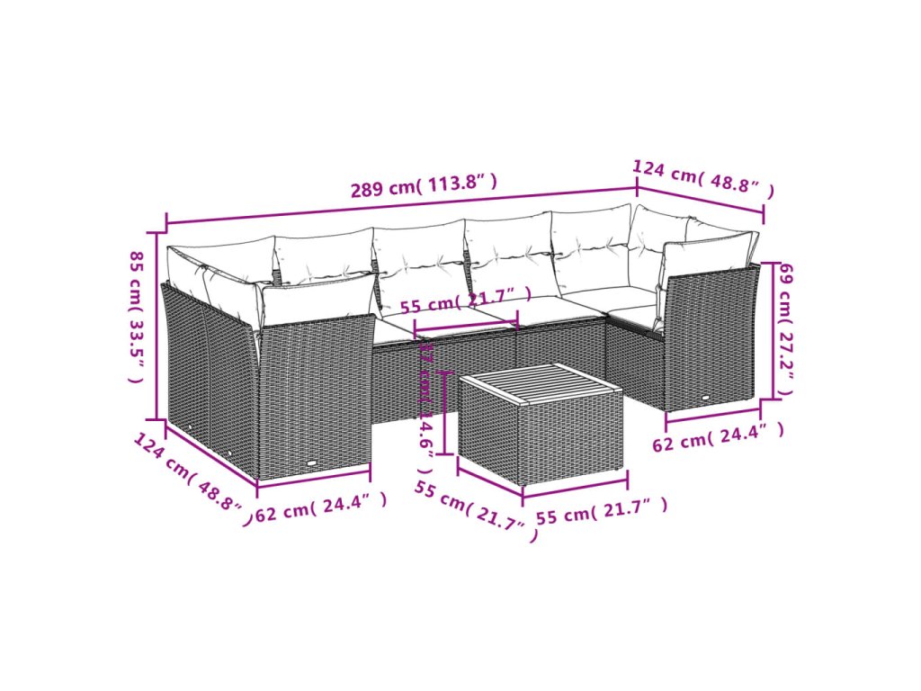 8dílná zahradní sedací souprava s poduškami černá polyratan 3255838