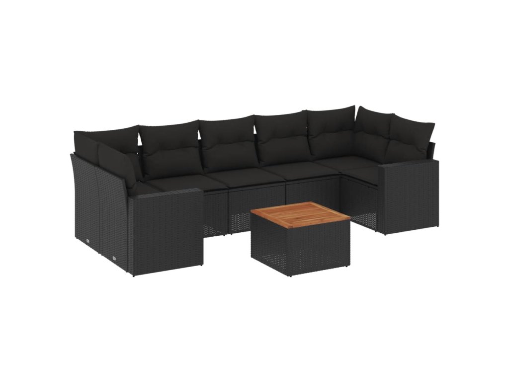 8dílná zahradní sedací souprava s poduškami černá polyratan 3256363