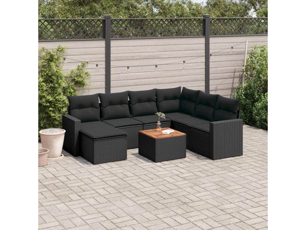 8dílná zahradní sedací souprava s poduškami černá polyratan 3256566