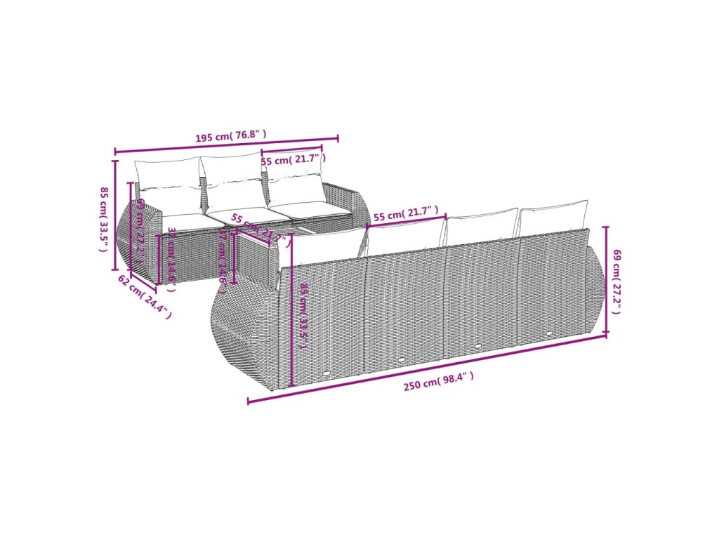 8dílná zahradní sedací souprava s poduškami černá polyratan 3257238
