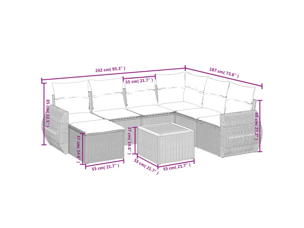 Tato zahradní sedací souprava je dokonalým doplňkem vaší zahrady, terasy nebo dvorku a poskytne vám pohodlné a příjemné místo, kde si můžete povídat s rodinou a přáteli nebo jen tak odpočívat a užívat si pobyt venku.
