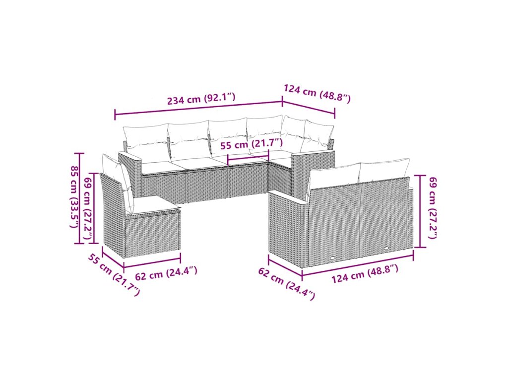 Tato zahradní sedací souprava je dokonalým doplňkem vaší zahrady, terasy nebo dvorku a poskytne vám pohodlné a příjemné místo, kde si můžete povídat s rodinou a přáteli nebo jen tak odpočívat a užívat si pobyt venku.