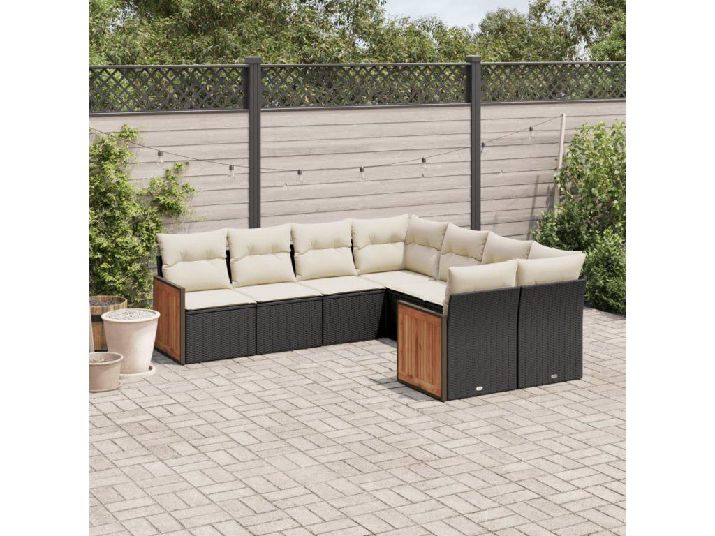 8dílná zahradní sedací souprava s poduškami černá polyratan 3260635