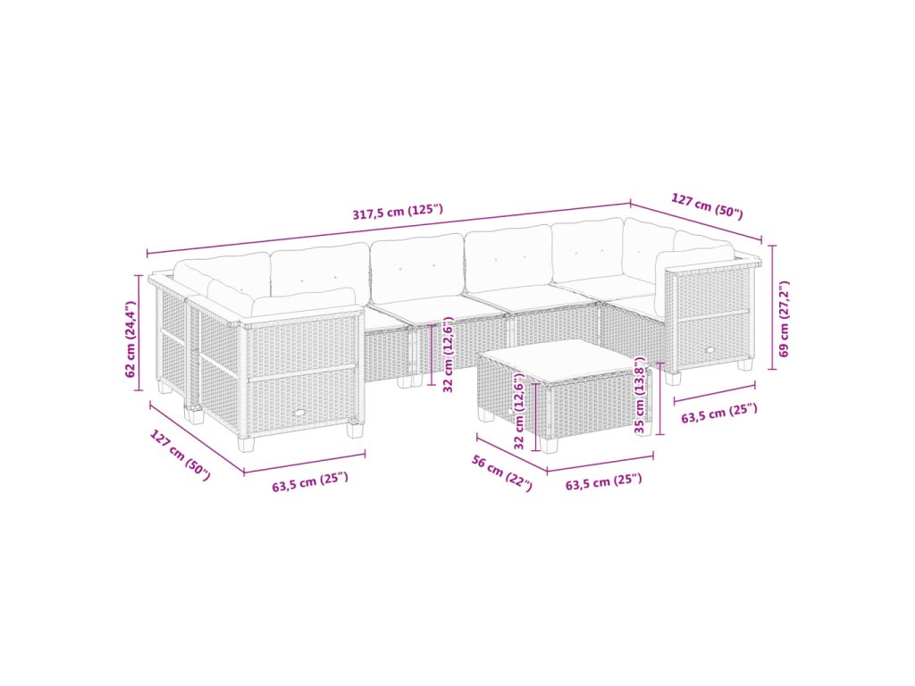 8dílná zahradní sedací souprava s poduškami černá polyratan 3261761