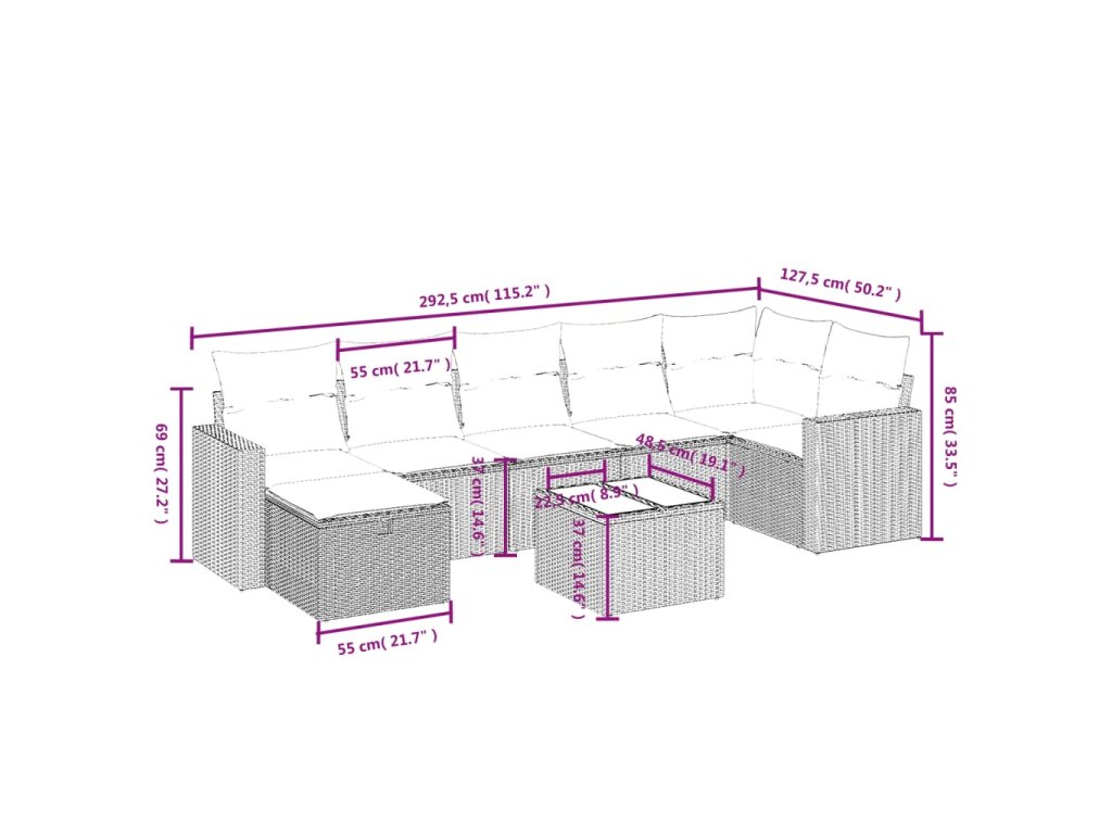 Tato zahradní sedací souprava je dokonalým doplňkem vaší zahrady, terasy nebo dvorku a poskytne vám pohodlné a příjemné místo, kde si můžete povídat s rodinou a přáteli nebo jen tak odpočívat a užívat si pobyt venku.