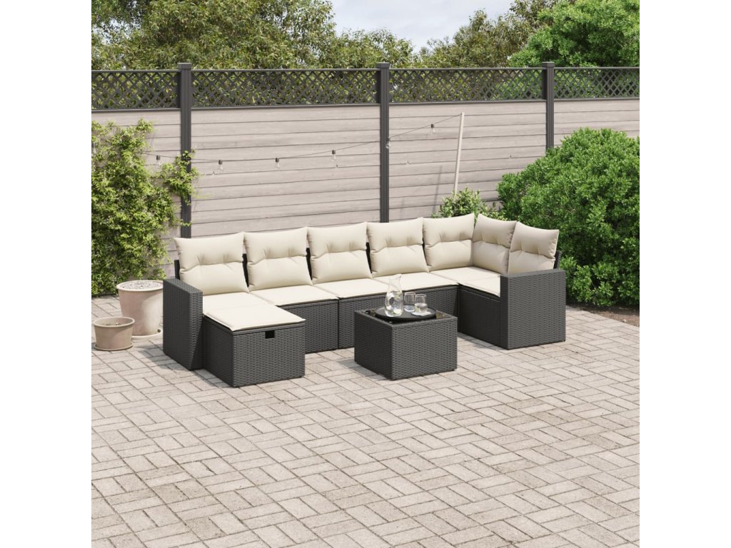 8dílná zahradní sedací souprava s poduškami černá polyratan 3263512