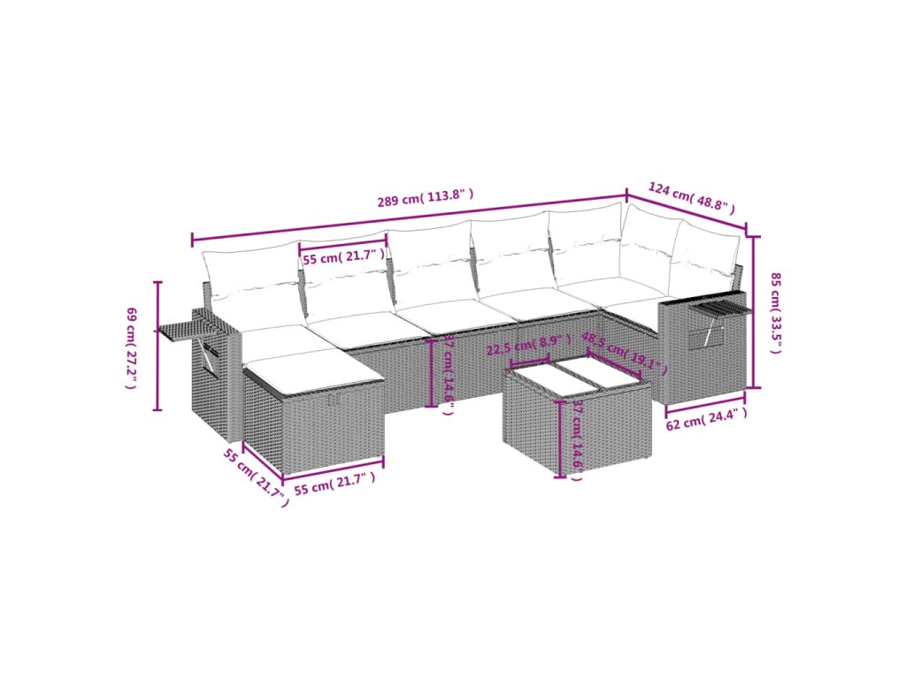 8dílná zahradní sedací souprava s poduškami černá polyratan 3263822