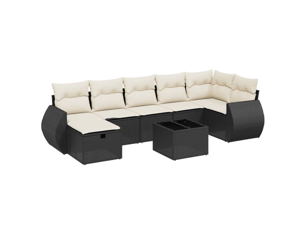 8dílná zahradní sedací souprava s poduškami černá polyratan 3264132