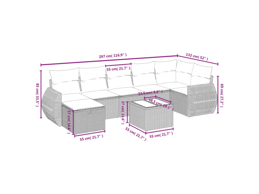 Tato zahradní sedací souprava je dokonalým doplňkem vaší zahrady, terasy nebo dvorku a poskytne vám pohodlné a příjemné místo, kde si můžete povídat s rodinou a přáteli nebo jen tak odpočívat a užívat si pobyt venku.