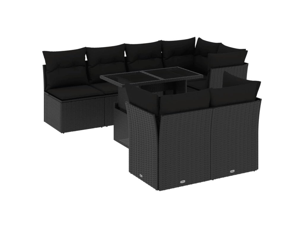 8dílná zahradní sedací souprava s poduškami černá polyratan 3266405