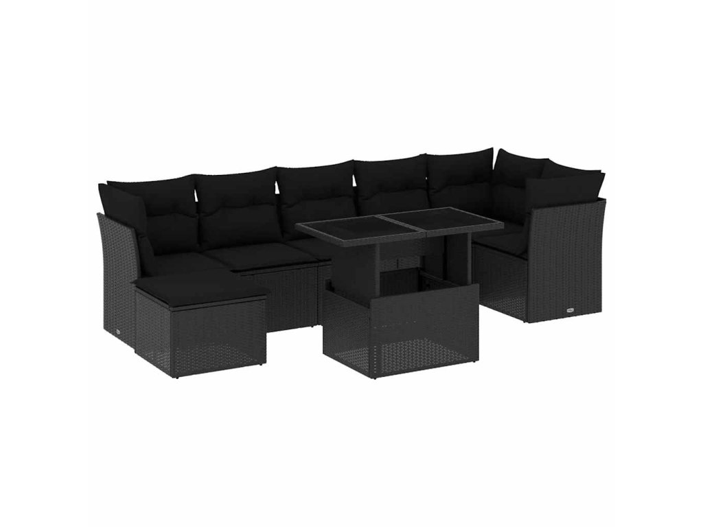 8dílná zahradní sedací souprava s poduškami černá polyratan 3266745