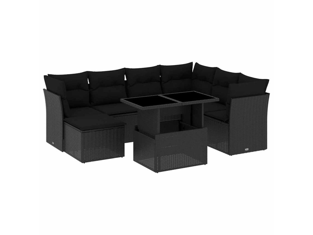8dílná zahradní sedací souprava s poduškami černá polyratan 3266755