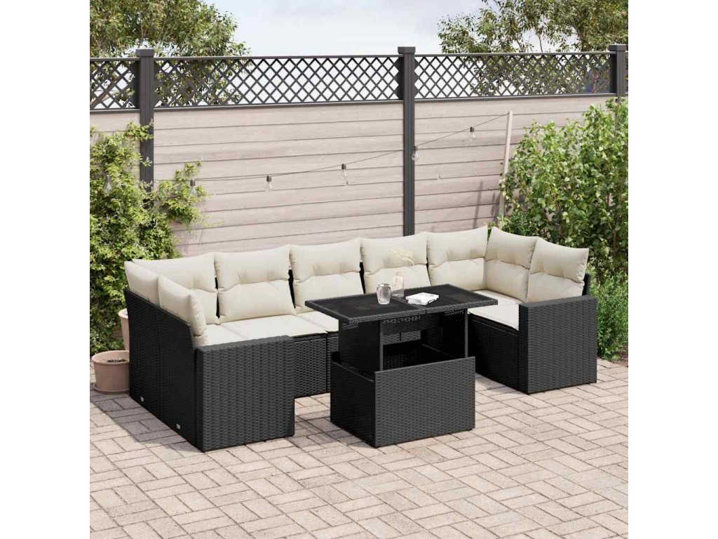 8dílná zahradní sedací souprava s poduškami černá polyratan 3267146