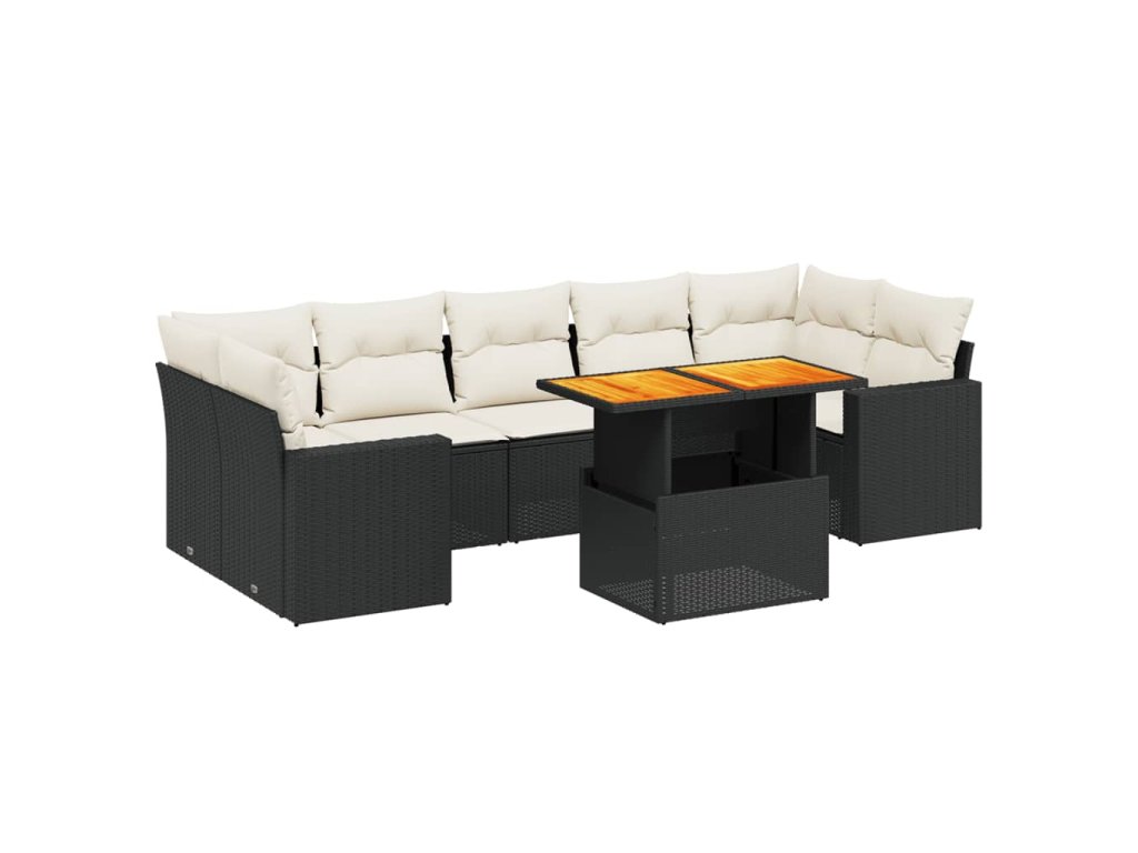 8dílná zahradní sedací souprava s poduškami černá polyratan 3271224