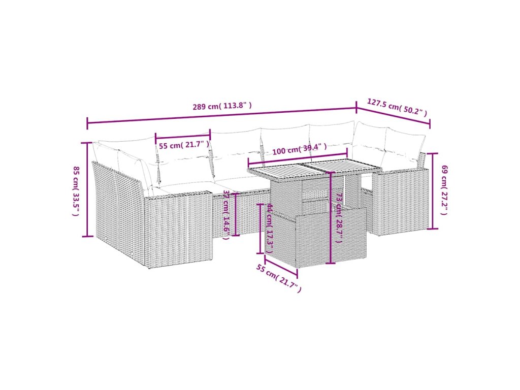 Tato zahradní sedací souprava je dokonalým doplňkem vaší zahrady, terasy nebo dvorku a poskytne vám pohodlné a příjemné místo, kde si můžete povídat s rodinou a přáteli nebo jen tak odpočívat a užívat si pobyt venku.