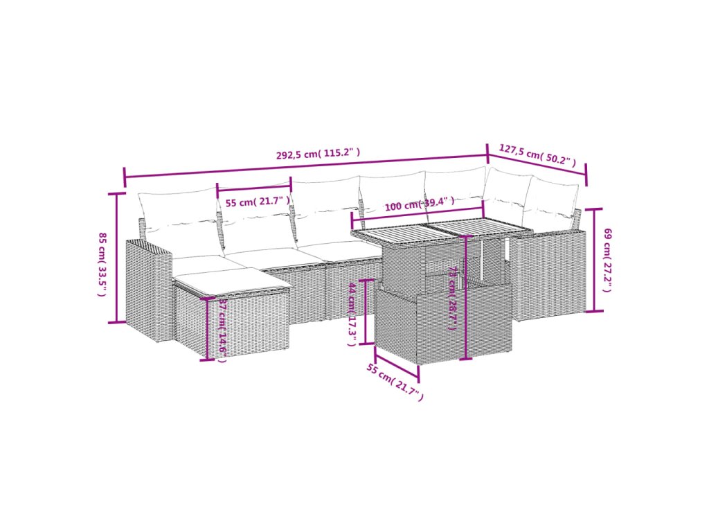 - Modulární design: Tato sada venkovního nábytku se vyznačuje modulární konstrukcí, je tedy zcela flexibilní a lze ji snadno přemisťovat, takže si můžete uspořádat venkovní nábytek dle vašich potřeb.